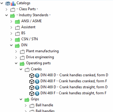 If no settings are made under Status colors for catalog index, green and semi-transparent directories are displayed (see above). Green is displayed if a project contains at least one line that meets the condition under Display condition for part selection [Display condition for parts selection] or a directory contains at least one project that contains parts that meet the condition, otherwise semi-transparent is displayed.
