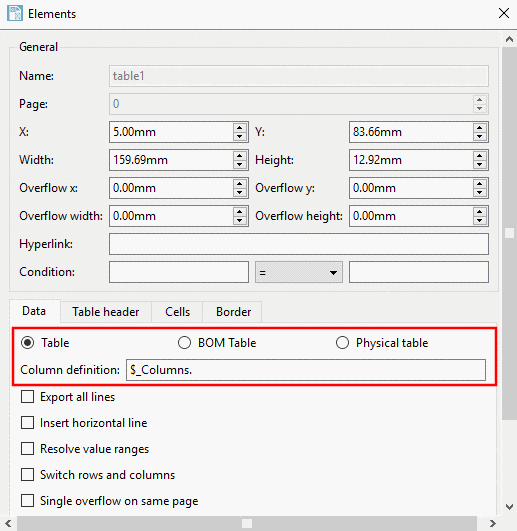 Column and value output in tables is controlled by Media Variables. The Media editor refers to the variable declared in the PARTtemplateDesigner.[117]