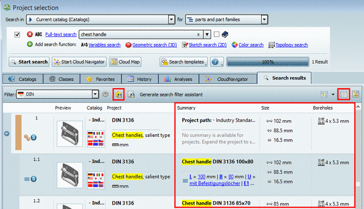 Thus search results, which have been saved via the function Save search results in favorites , now have the same columns available like Summary for example or the aggregated topological columns (on this also see Section 4.2.1.3, “ PARTdataManager: Show specific Topology and/or ERP values in search results”).