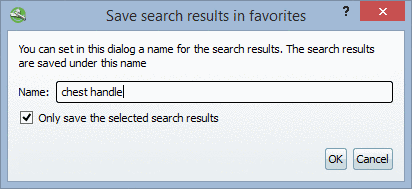 When clicking on the icon Save search results in favorites the same named dialog box opens. Here you can define the name to be saved.