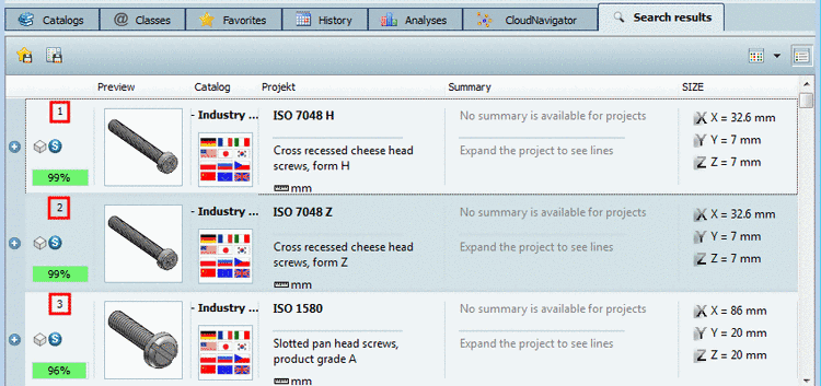 In all result lists independent of the search method in the first column the result position number is displayed. When a CSV export is performed (see above) the number can be exported in the column Result position.