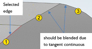 In following example edge selection is used. For a few edges tangent continuous works, but at two other edges tangent continuous stops due to too low resolution.
