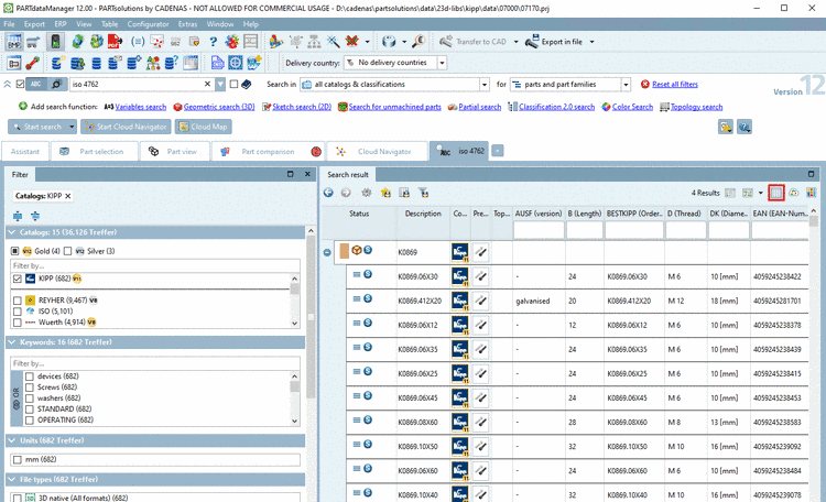 However, the table is dynamically adjusted if a filter is set (meaning a new search is performed). If a certain catalog is filtered some empty columns disappear at once. The same applies if a filter in the column header is used.