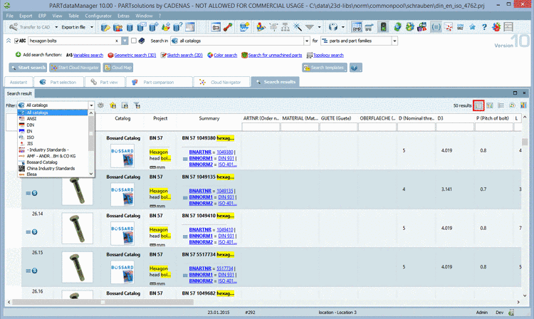 If the search covers a wider range (many catalogs or differing parts) then there are more differing variables so possibly fields remain empty. See following figure.