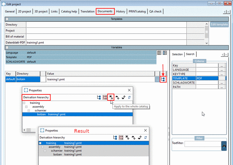 .Select the test project "bolt" and via Apply to the whole catalog pass on the template from there to the catalog root element.