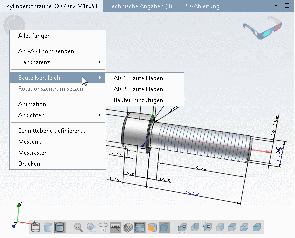 With the Zoom all button you bring the display of the part onto a balanced measurement. The part is large enough, but still does not protrude over the 3D view window during rotation. If the option Explicit zoom has been set (see Section 3.3.8.4.1, “ Handling ”) the display within the window is maximally enlarged.