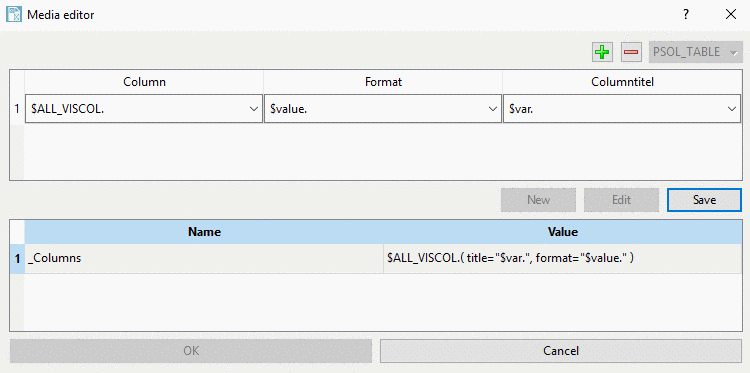 Media Variable of the type PSOL_TABLE: