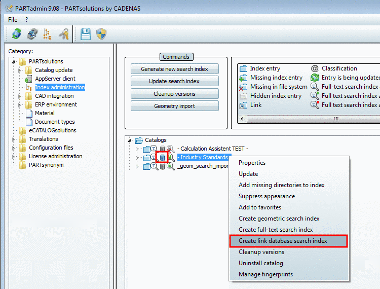The respective command for manual creation is found in PARTadmin -> Index administration -> context menu command Create link database search index.
