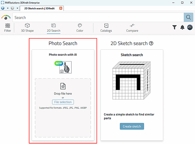 Open 3Dfindit and click on the 2D Search [2D search] icon.