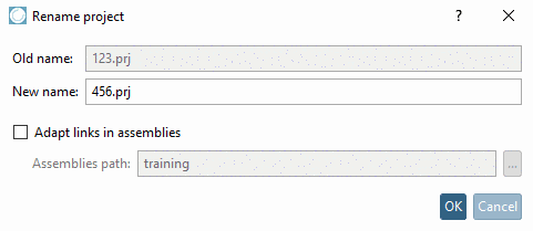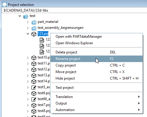 -> When the project is renamed, all sub-files, such as *.3db, *.tab and *.tac, files etc., are also renamed accordingly. This ensures that the project-internal assignment is retained.