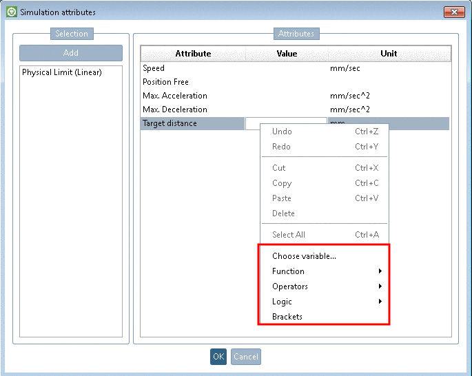 Optionally, motion profiles can be set up, in order to perform a dynamic movement (e.g. given by motion diagrams in the original product data). In this case click again and choose Actuator > Actuator Linear > Diagram Time Position.