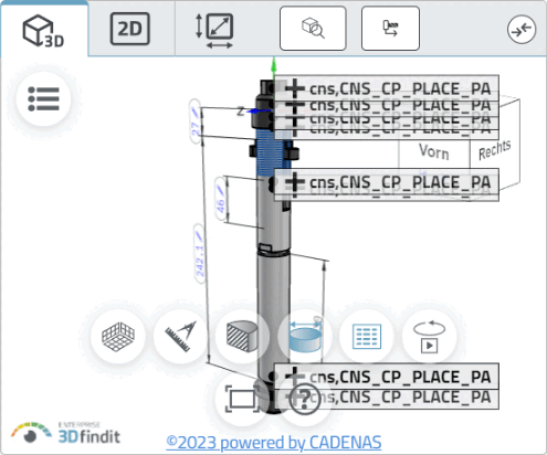 Classified connection points are still displayed via the Show texts and classes button. The display of connection points can be switched on again using the configuration file. For more information, see the chapter Section 4.21.3.4, “Show connection points ” in ENTERPRISE 3Dfindit (Professional) - Administration.
