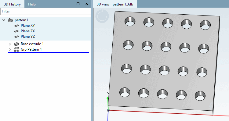 -> The rectangular pattern is displayed in the 3D history [3D History] under Grp Pattern.
