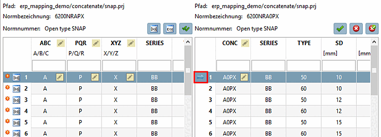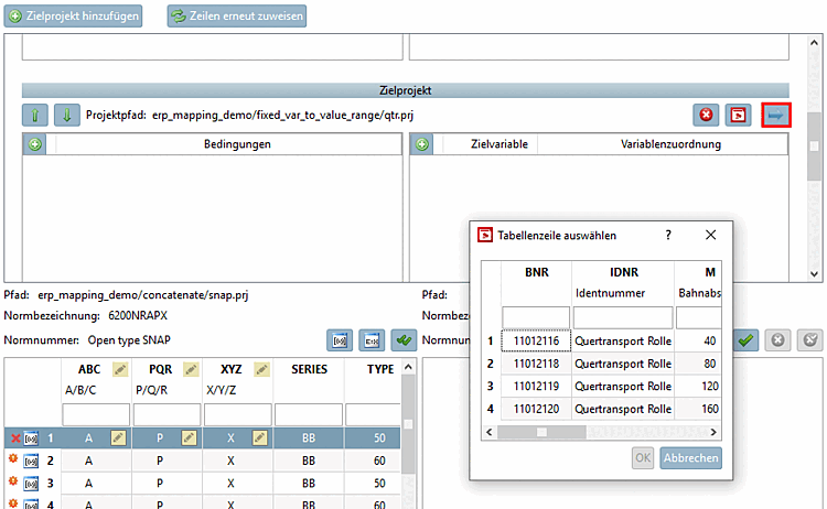 1. Select desired target project and then click on the blue arrow (activated in each target project).