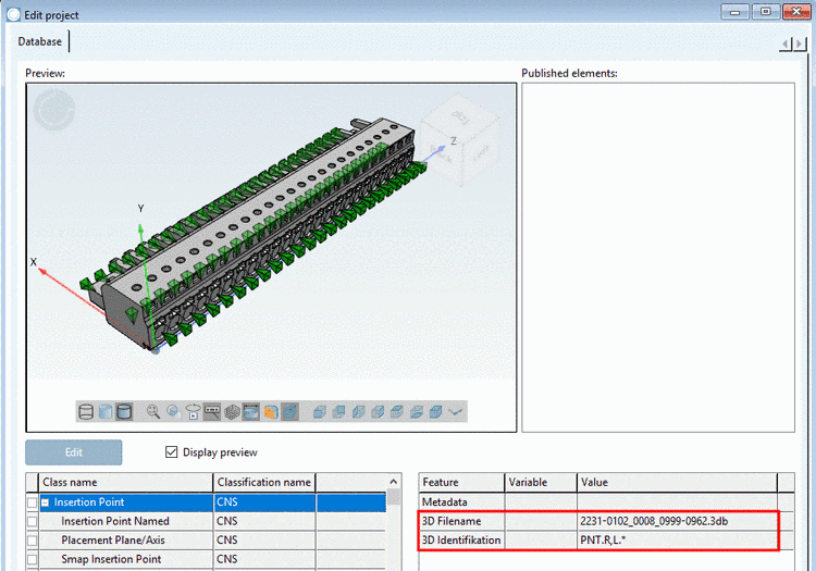 Select the 3db file. Now all available connection points are displayed. In the dialog box Choose connection point all points are displayed as well. Now you can classify single connection points, which does not make sense in this example, because a large number of connection points has to be classified in the same way.