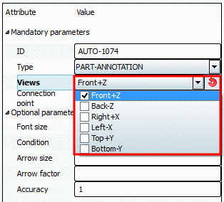 When creating a new dimensioning HORIZONTAL is automatically displayed. Adjust selection in the list field to PART-ANNOTATION. You can change the type anytime.