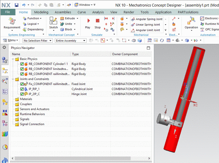 functionality available in the Mechatronics Concept Designer, under