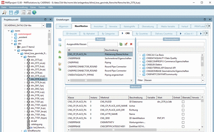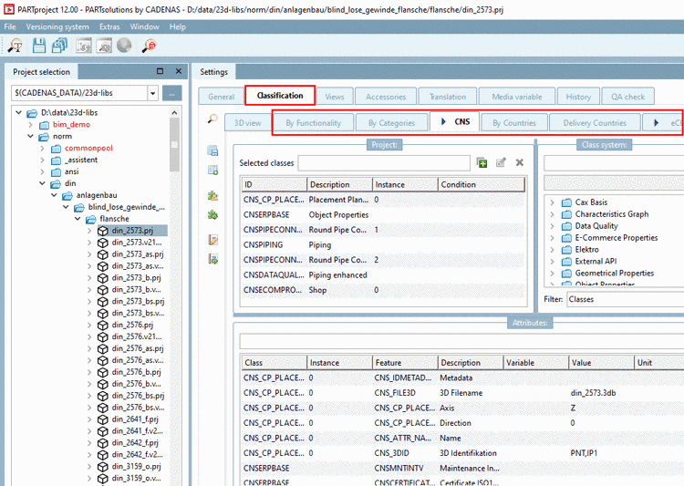 CNS: For example, the CADENAS classification uses placing information, published elements and attributes for the CAD integration or order number, type code, certificate information. For details see Section 5.12.3.1, “Classification (CNS) ”.