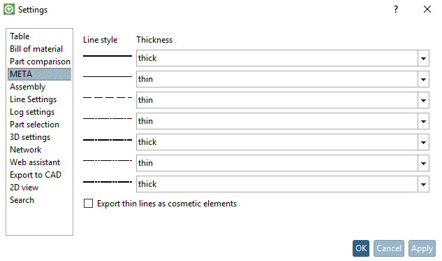 Export thin lines as cosmetic elements : ...gives thin lines the label "Cosmetic element" when exporting to the CAD system.
