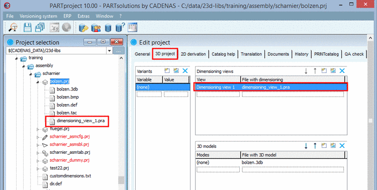 In the Dimensioning views area, add a new line. On the left side, enter the name which later shall be displayed in PARTdataManager and on the right side the desired file name for PARTproject. Confirm with click on the 'Return' key.