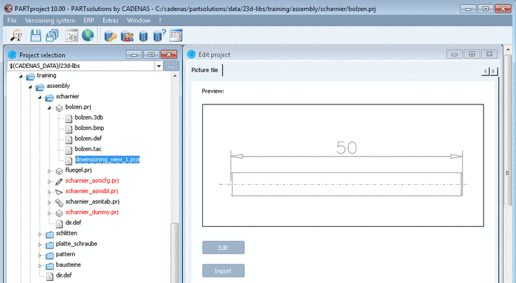 Dimensioning views (e.g. Side view, Front view, etc.) displayed in PARTdataManager, in the Technical details dialog area are managed in PARTproject as *.pra files. Normally these dimensioning views are provided by the customer as DWG or DXF files.