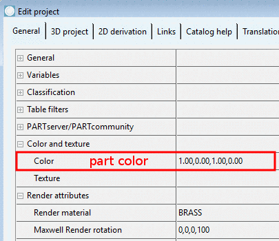 part color: ... denotes the setting under Color and texture -> Color in the matrix.