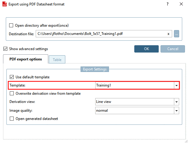 Visible name: Name, how it is displayed at the datasheet export in PARTdataManager as template name. If Visible name has not been determined, the entry under Name is used.