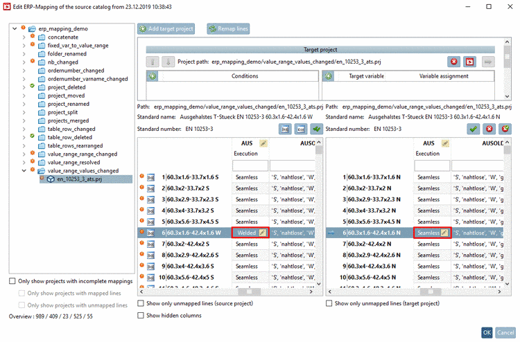 Changed values: 'N', 'nahtlose', 'G', 'geschweisste'