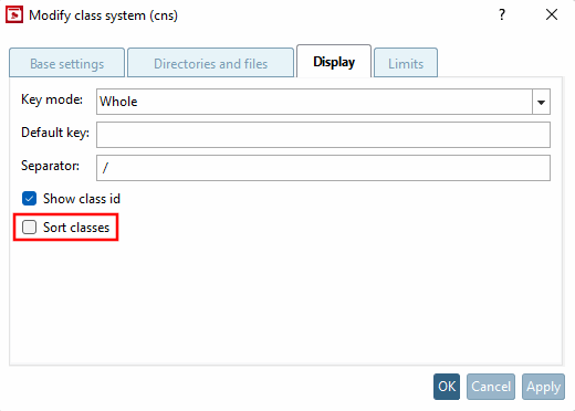 On the Display tabbed page, the Sort classes option can be used to activate or deactivate automatic sorting of the classes for each classification.