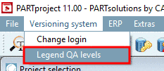 The same dialog box can be opened via Versioning system menu -> Legend QA levels.