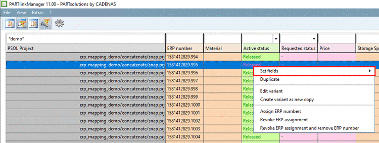 If everything could automatically be assigned, then nothing is selectable anymore. Otherwise perform the mappings with the help of the Update Manager. Details on this can be found under Section 4.16.3, “ Catalog update with ERP integration - Fix mapping problems with the Update manager ” in PARTsolutions - Administration Manual.