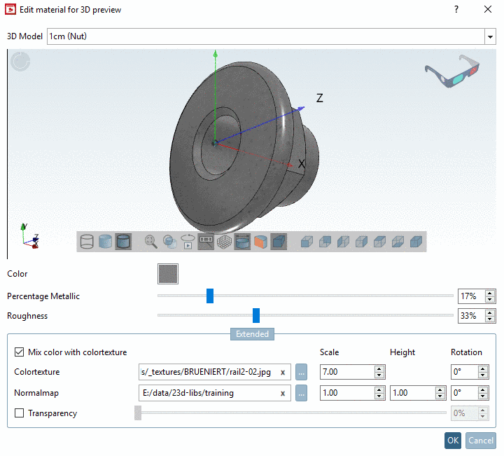 functionality (textures and Normalmaps[3]) you will receive very realistic 3D views. The material can be