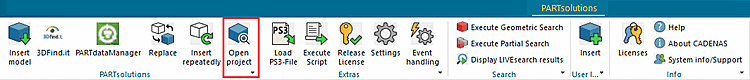 Click on Open project to check whether the selected assembly element originates from PARTsolutions.