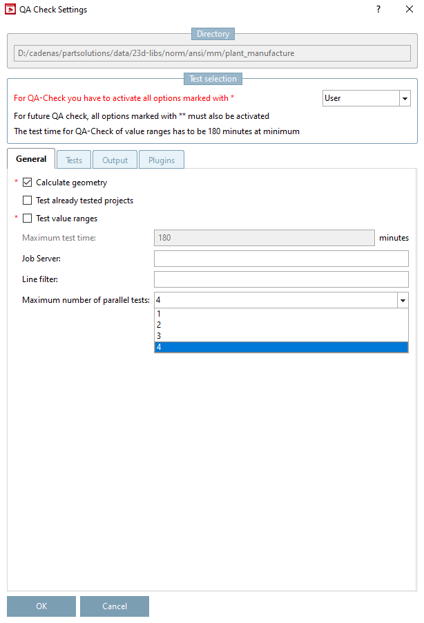 The QA Check settings [QA Check Settings] now include an option Maximum number of parallel tests to control CPU resources.
