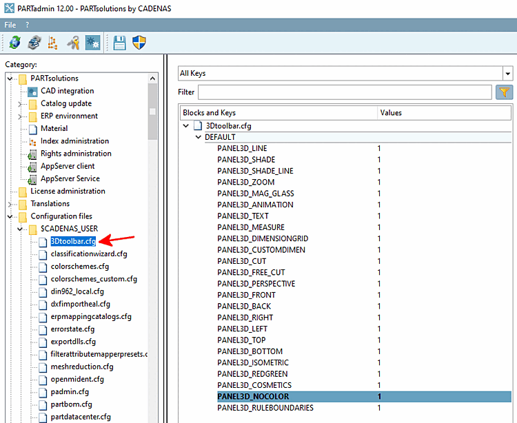 Settings in the block [DEFAULT] concern the 3D view of all modules and features (PARTdataManager [standard 3D view, part comparison], PARTdesigner [part and assembly] PARTproject [standard view, edit render material, classifications]).