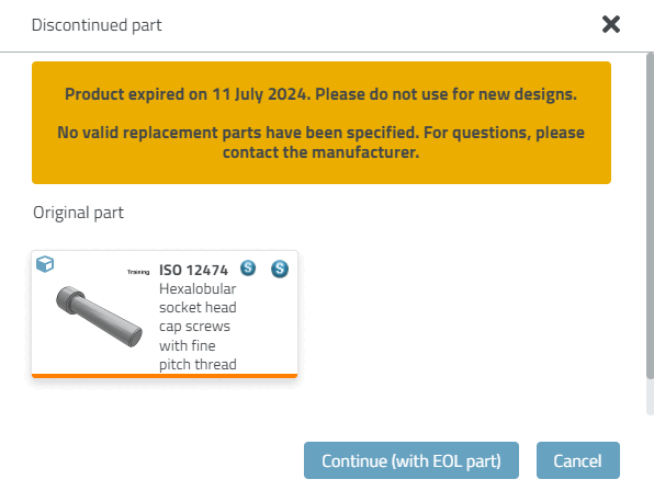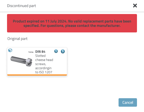 No valid spare parts have been specified. [No valid replacement parts have been specified. For questions, please contact the manufacturer.]