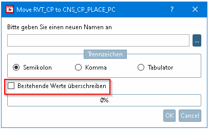 Enter a name for the CSV file via .. to enter a name for the CSV file and activate the Overwrite existing values option if necessary.
