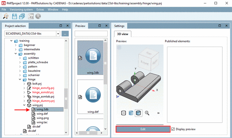 PARTdesigner is called in PARTproject after selecting the desired file under Project selection and then either via context menu command or in the docking window Settings by clicking on the button.[76]