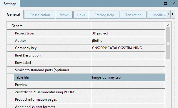 In PARTproject, mark the file "hinge_dummy.tab" and in the docking window Settings, click on .