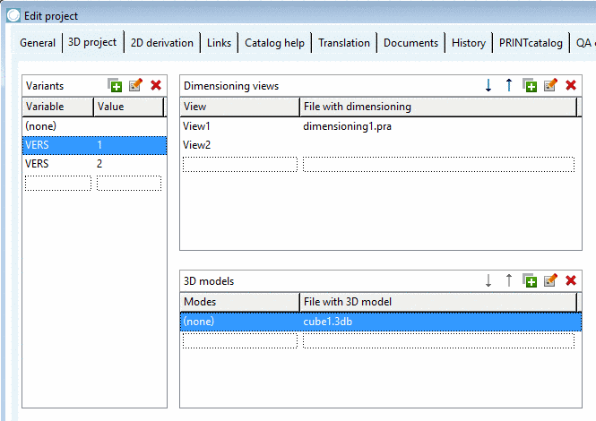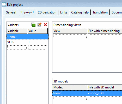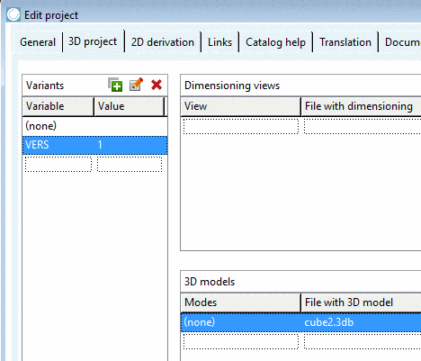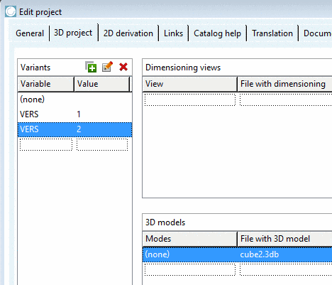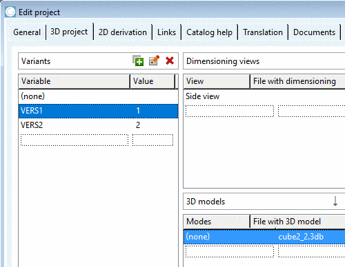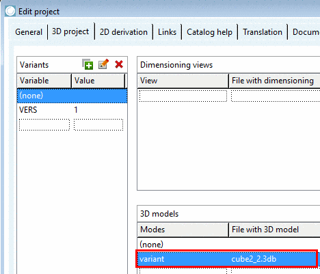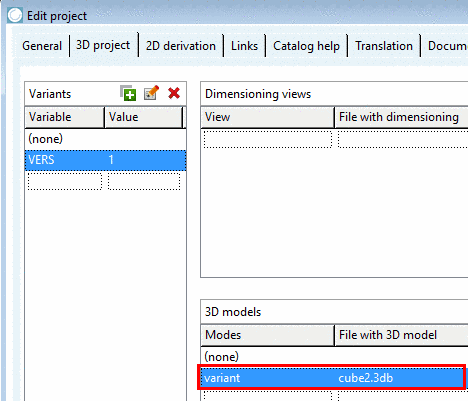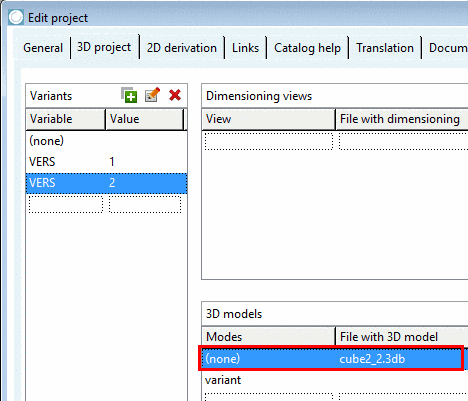 If in the dialog area Variants a 3D model assignment exists for the variant (none), that variant is used as "fallback" for all cases, where variants do not have a model (in below example "VERS=2").