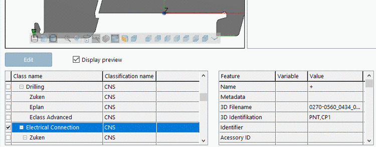 -> Below the Preview, a dialog is opened where you can select the class to be assigned. There on the right side, the related attributes are displayed.