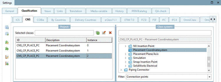 • In order for a component / assembly to be able to be placed in Revit, at a certain position in the family, an eCATALOGsolutions connection point with adequate orientation has to be created in the project geometry and to be published via CNS classification -> class Placement Coordinatesystem (CNS_CP). See Section 3.5.4.2.2.4, “Classify placement connection point”.