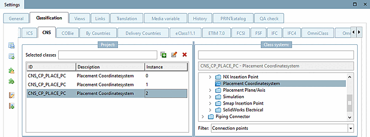 To be able to place a component / assembly in Revit, an eCATALOG 3Dfindit connection point with the corresponding orientation must be created in the project geometry at a specific position in the family and published via CNS Classification -> Class Placement Coordinate System (CNS_CP). See Section 3.5.4.2.2.4, “Classify placement connection point”.