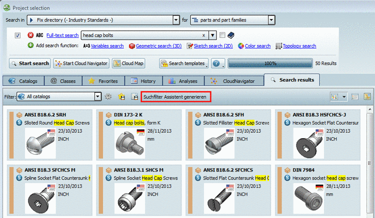 tabbed page with the search results.Now call up the Topology search via context menu command again.