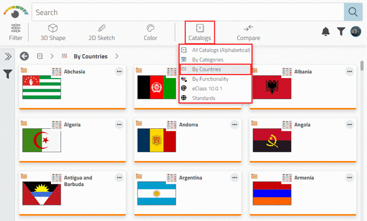 By Countries shows the manufacture's distribution sites (e.g. PARTcommunity Maps / RFQ Feature, in 3Dfindit under "About the manufacturer"). The objective is to offer the user an effective product procurement near his own location.