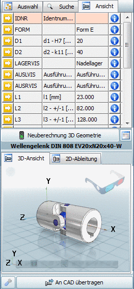 At Piston 50 you can see under parameter (D / L), that no assignment is possible. -> Click on