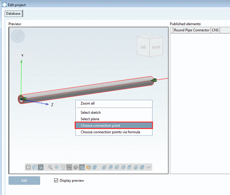 Or select the desired connection point in the preview (the point is marked in red now) and click the context menu command Connection point.