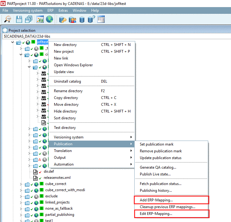 If you want to initiate an ERP mapping (either before or after a SVN checkin), for this, under Publication, use the commands Add ERP-Mapping... and Edit ERP-Mapping....