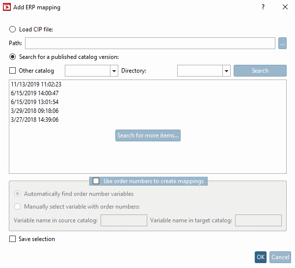 The dialog box Edit ERP mapping for source catalog from ... is opened. Compare above.