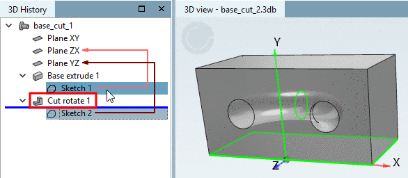 -> In the 3D History another point (feature) shows up: Cut extrude 1.